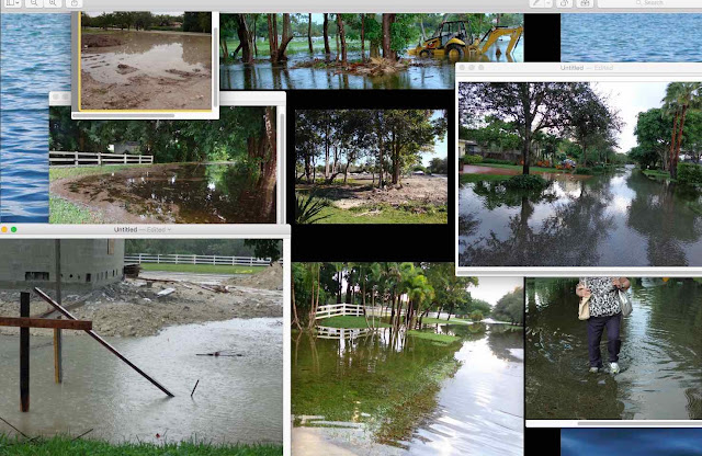 Flooding of the proposed development land at SW 72 Avenue and 96 Street is ongoing. Where once horses fed and grazed, now a huge water retention and flooding problem exist. A berm finally built in 2012 to keep water contained inside the acreage failed a year after construction.
